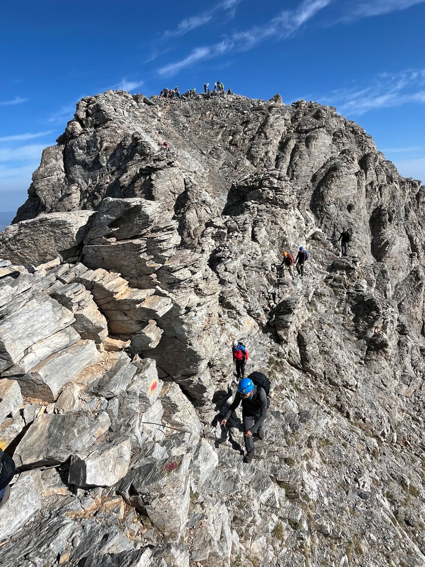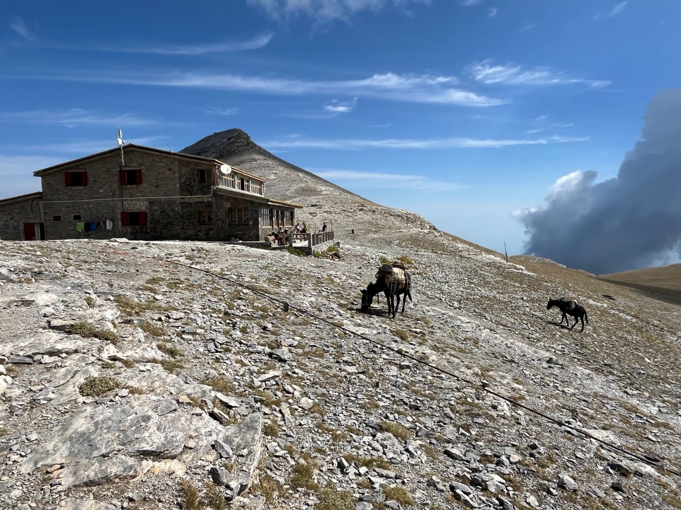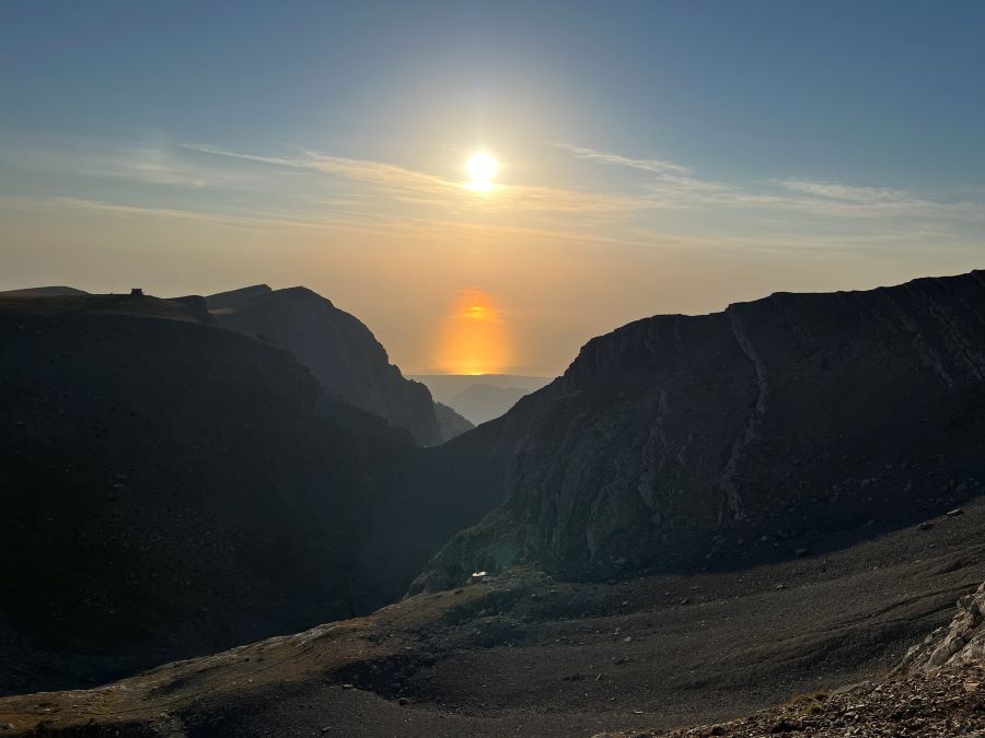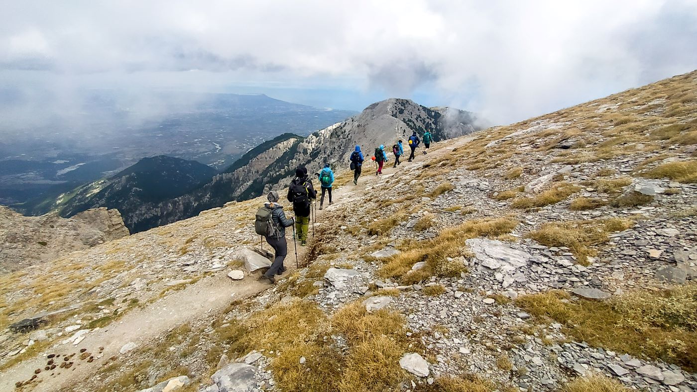 Na koniec tej ogólnej charakterystyki Olimpu jeszcze parę słów o klimacie i pogodzie tej góry, bo to ona najczęściej decyduje o powodzeniu i atrakcyjności wycieczki. A jest tu ona specyficzna, i często odbiega raczej od wyobrażeń, które większość turystów posiada na temat Grecji, która jest jednym z najbardziej górzystych krajów Europy. Podnóża Olimpu mają typowy klimat śródziemnomorski, w lecie gorący, w zimie łagodny, ale często wilgotny. Natomiast im wyżej, tym klimat robi się coraz ostrzejszy. Powyżej wysokości 2000 m, śnieg może zalegać od listopada do maja, a zimą opady potrafią być naprawdę intensywne. W żlebach, które czasami przekraczają szlaki prowadzące na szczyt śnieg może zalegać nawet do początków lipca (tak było na przykład w 2022 roku).