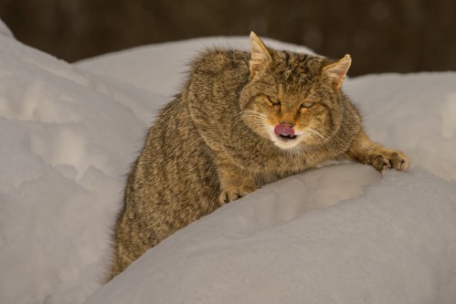 Jednak nasze rumiane od mrozu twarze i świecące oczy znamionują sukces: zobaczyliśmy nie tylko orła przedniego, mocarza przestworzy, który w Polsce nie ma sobie równych: idąc na solo, pokonuje nawet bielika; zobaczyliśmy też żbika, najtrudniejszego do sfotografowania kota Europy. Ten jeden z protoplastów kota domowego może się z nim krzyżować i podobno w naszym kraju, nie dość że skrajnie rzadki, nie występuje już w postaci czystego genetycznie dzikusa. Kiedy pytam o ewentualną hybrydyzację Mario, spogląda na mnie z wyrzutem i politowaniem. Niemal go obraziłem. „Hybrydy spotyka się, owszem, u was, w Europie Środkowowschodniej – tu masz pewność, że to stuprocentowy wildcat” – zamyka dyskusję.