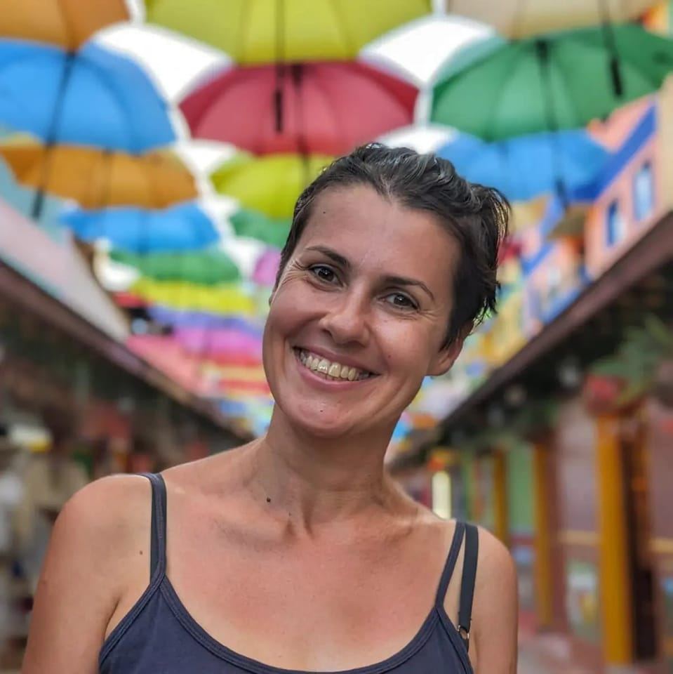Z wykształcenia italianistka, socjolożka i animatorka kultury, prywatnie entuzjastyczna dusza, której wszędzie pełno. Na tyle szalona, by pewnego dnia rzucić pracę w korporacji i wyjechać... trochę dalej niż w Bieszczady, bo nad Morze Śródziemne, gdzie miała szczęście mieszkać na Wyspach Jońskich, w Toskanii czy na Majorce. Za podróżniczymi marzeniami goni na wiele sposobów; nie tylko samolotem, autokarem czy autem, które zresztą kocha prowadzić, ale również na rowerze, nartach, jachtem, SUPem, a nawet konno! Uwielbia włoskie dolce vita, hiszpańskie flamenco, grecki turkus morza, francuski Roland Garros i portugalskie fado. Dlatego mówi o sobie, że jest obywatelką Śródziemnomorza, choć to bez kuchni azjatyckiej nie wyobraża sobie życia. Poza południową Europą można ją zatem spotkać również na szlakach Sri Lanki lub Azji Południowo-Wschodniej. Za to do Ameryki Środkowej ciągnie ją fascynacja zarówno tajemnicami rdzennej kultury sprzed tysiącleci, jak i niezrównanym bogactwem przyrodniczym. A wszystko to z ulubioną nutą latino w tle! Turyści cenią sobie podróże z Asią, w przeciwieństwie do jej kota (patrz zdjęcie) ;)