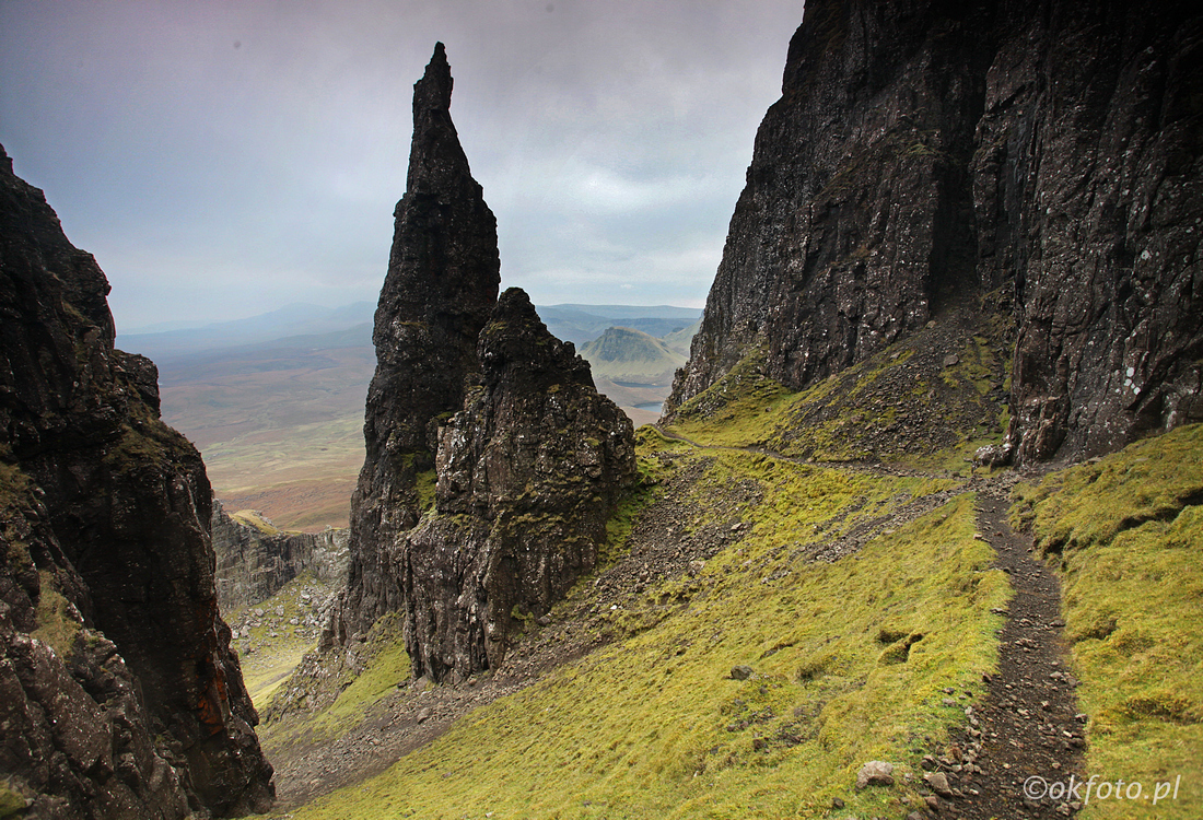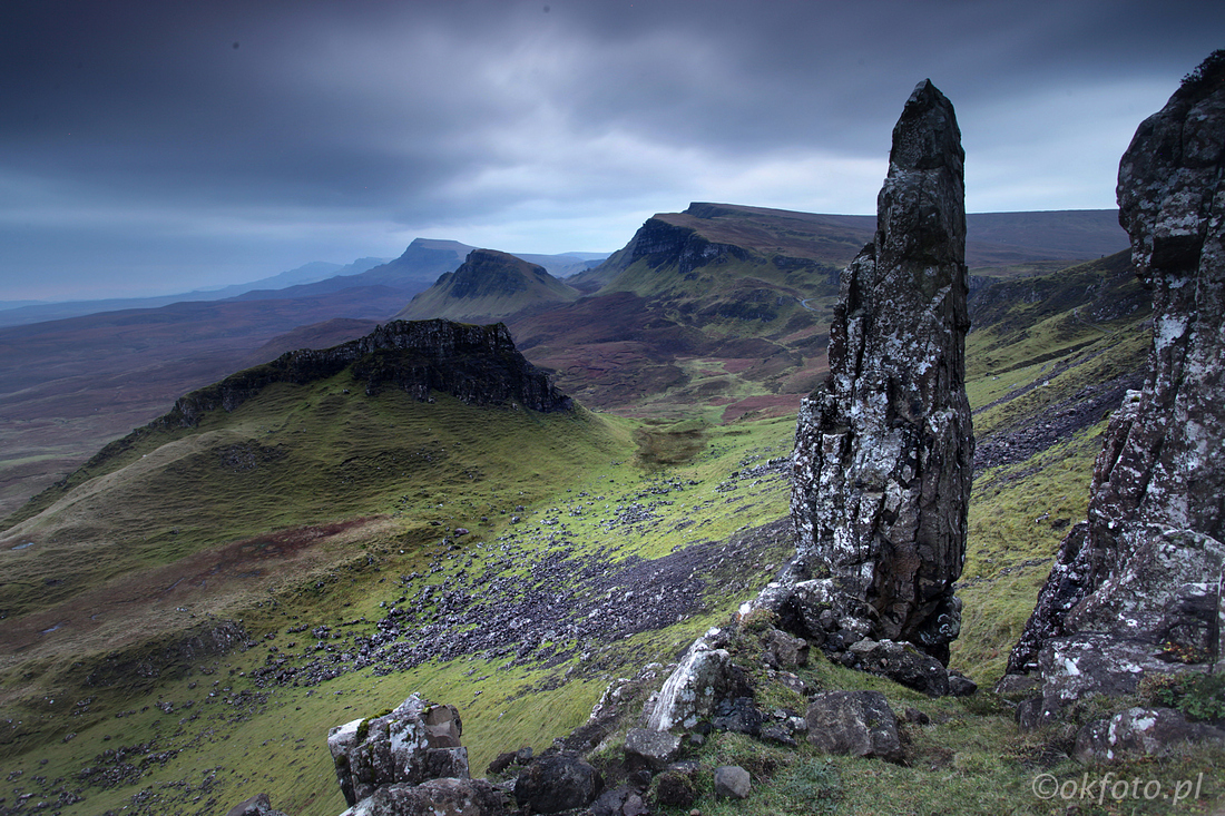 Góry Quiraing zapierają dech w piersiach. Widok omszałych ścian opadających w stronę przedatlantyckiej równiny pozostaje w pamięci do końca życia. Tak się szczęśliwie składa, że na sam szczyt przepaści prowadzi droga, a z parkingu do najlepszych punktów widokowych jest kilka minut spaceru. Oczywiście warto też pójść dalej, ścieżką używaną przez owce i turystów, i odkryć jakiś niezwykły pejzaż tylko dla siebie.