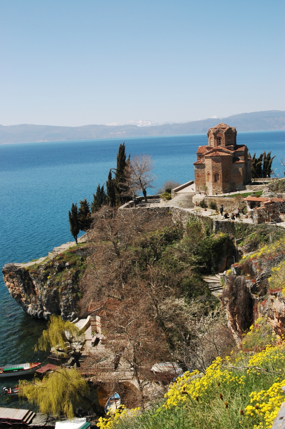 Stańcie na grzbiecie górskim w obrębie Parku Narodowego Galicica twarzą zwróconą na wschód, wtedy oślepi Was blask słońca, którego promienie odbijać się będą w tafli najstarszego jeziora Europy – Jeziora Ochrydzkiego. W tej pozycji zostawicie za plecami podobne powierzchnią Jezioro Prespa, którego tafla góruje nad sąsiadem zza góry o około 150 m, a obydwa jeziora odwadnia tylko jedna rzeka. W jaki sposób? Ponieważ pod waszymi stopami znajduje się system niezbadanych podziemnych kanałów, którymi wody z jednego jeziora przedostają się do drugiego i biją obfitymi źródłami zasilając Jezioro Ochrydzkie. Ale gdzie? Spójrzcie w dół, na wprost i lekko na lewo – tam gdzie gliniane dachówki pokrywają średniowieczny monastyr św. Nauma, bo tuż przed nim podziemne źródło wypycha na powierzchnię hektolitry wody, które silnym nurtem wpadają do jeziora, tworząc wyraźny prąd. Teraz popatrzcie na prawo, w dal, gdzie na wzgórzu widnieje twierdza nad brzegiem, a u jej stóp rozciąga się starożytna Ochryda, w której okolicy znajdziecie kolejne źródło. Ale jak to? Po prostu, z góry widać więcej...