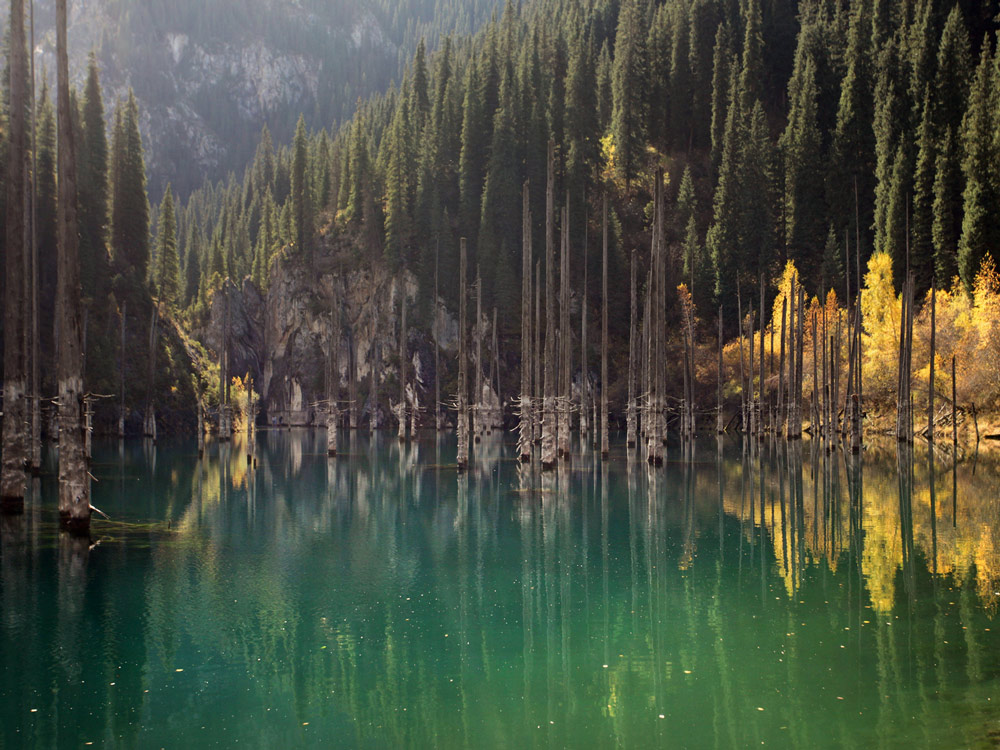 Jedno z najwyższych pasm górskich centralnej Azji będzie nam przez cały czas towarzyszyć na horyzoncie. W końcu przyjdzie czas na bliższe spotkanie. Odbędzie się ono przy śródgórskich jeziorkach Kaindy i Kolsai. To pierwsze słynie z „lasu” wyrastającego bezpośrednio z lustra wody. Akwen powstał po trzęsieniu ziemi w 1911 r., gdy wielka lawina ziemna zatrzymała rzekę w dolinie, a na miejscu górskiego lasu pozostały malownicze kikuty drzew. Kolsai nie ma takich atrakcji, za to może poszczycić się pięknym górskim położeniem.