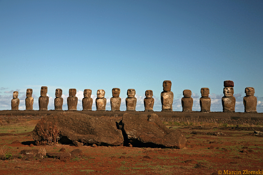 Rapa Nui to najdalej położona wyspa od innych zamieszkałych lądów na świecie. Na Pacyfiku odkryjemy krainę uśmiechniętych wyspiarzy żyjących z dala od zgiełku wielkiego świata, cywilizacji i problemów współczesności. Kamienne posągi – moai – stoją niczym strażnicy dawnych mitów i legend. Odwiedzimy ceremonialną wioskę Orongo, która leży na krawędzi wulkanu Rano Kau. Tutaj odbywały się doroczne zawody Tangata Manu. Brali w nich udział wybrańcy z rywalizujących ze sobą klanów, którzy mieli przepłynąć rojący się od rekinów ocean i zdobyć pierwsze w danym roku lęgowym jajo gnieżdżącej się na skale Moto Nui rybitwy czarnogrzbietej. Wódz zwycięskiego rodu otrzymywał tytuł Człowieka Ptaka i był obdarzony niemal boską czcią. Dotrzemy też do wulkanu Rano Raraku, z którego zboczy wyciosywano kamienne posągi, których doliczono się na wyspie blisko tysiąc. Ustawiano je nad brzegiem oceanu na kamiennych platformach ahu, prawie zawsze zwrócone tylem do morza. Ich widok na tle bezkresnego oceanu to jeden z najpiękniejszych jakie możemy spotkać.
