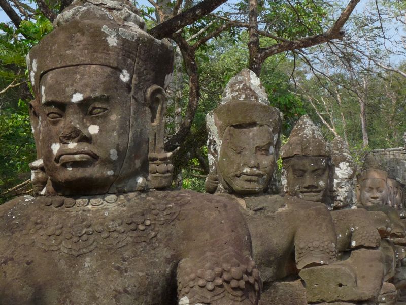 Dzisiejsze Królestwo Kambodży, nazywane Kampuchea, powstało na bazie wcześniejszego Imperium Khmerskiego, które istniało w rejonie dolnego biegu Mekongu od IX do XV wieku. Centrum administracyjne Imperium znajdowało się w kompleksie miejsko – świątynnym Angkor, nieopodal Jeziora Tonle Sap. Po upadku Imperium, jego stolica opustoszała, a do dnia dzisiejszego podziwiać możemy wspaniałe świątynie i zespoły miejskie. Największą z nich i najczęściej odwiedzaną jest Angkor Wat ze zwieńczeniami dachu w kształcie pąków lotosu. Odwiedzimy także słynną świątynię Bayon, nazywaną świątynią setek twarzy. Jej wysokie wieże ozdobione są twarzami uśmiechniętego Buddy. Z kolei świątynia Ta Prohm przyciąga swym mistycyzmem i tajemniczością. Labirynt korytarzy i budynki „pożerane” przez korzenie dżungli tworzą wyjątkową atmosferę.