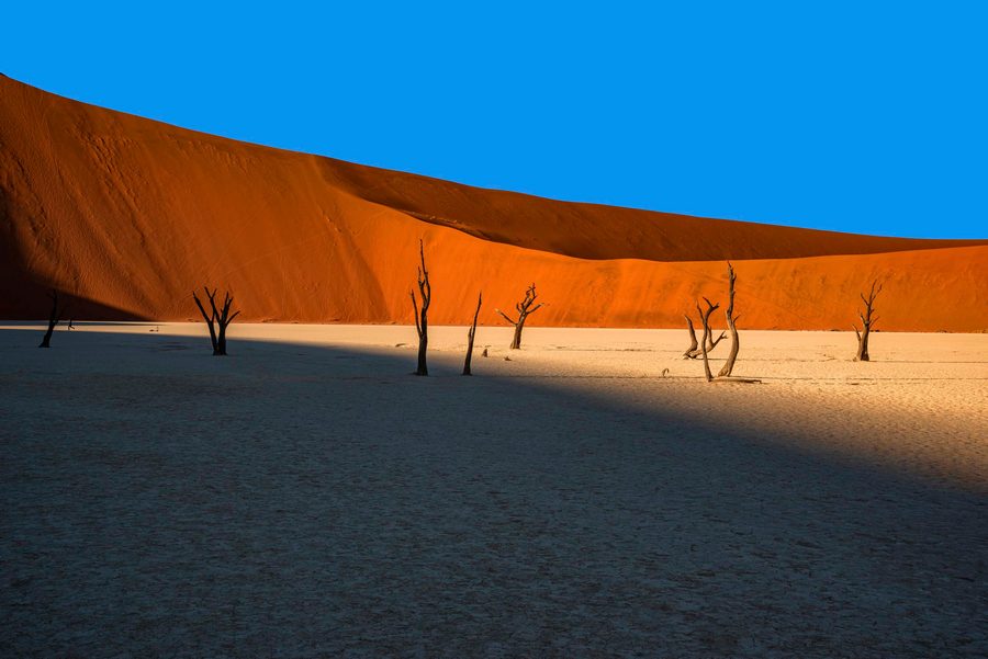 Olbrzymie tereny Parku Narodowego Etoszy przemierzają liczne stada antylop i zebr, żyrafy i słonie oraz idące ich tropem drapieżniki – lwy, hieny, gepardy. Jest to największy w Namibii i jeden z największych parków w Afryce w ogóle. W Namibii znajduje się również jeden z najstarszych obszarów pustynnych na świecie – pustynia Namib. Obejrzymy tu wydmy o niebywałej wysokości (ponad 300 m), które o zachodzie słońca nabierają intensywnie pomarańczowej barwy.