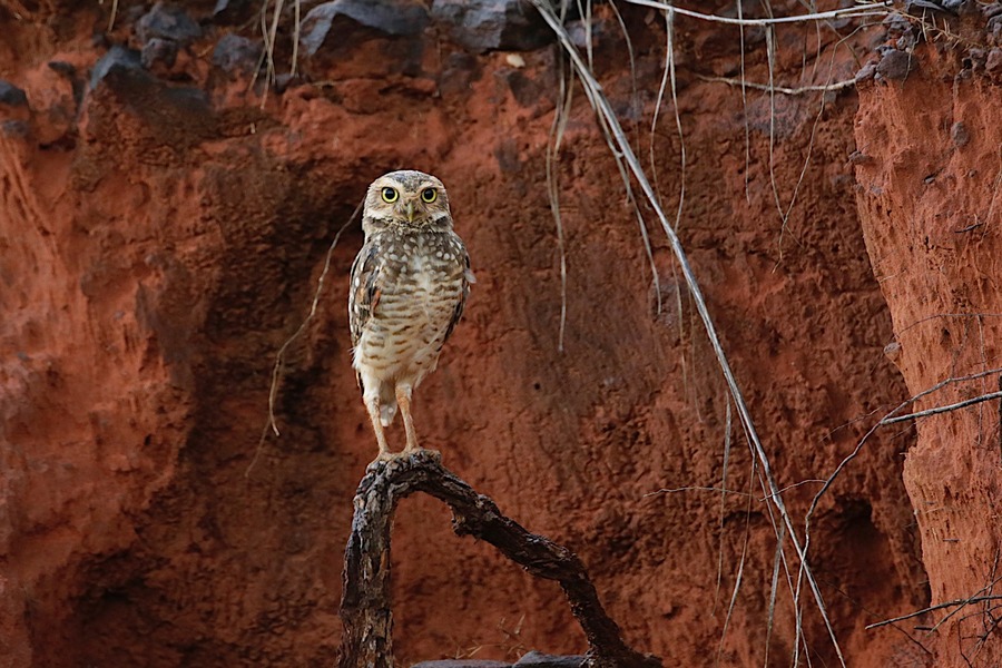 Podczas, gdy Pantanal jest nizinny i bagienny, park Chapada dos Guimarães położony jest na Wyżynie Brazylijskiej. Urokliwy krajobraz tworzy wysoki klif z piaskowca, porośnięty zaroślami typowymi dla sawanny, graniczący w dolnej partii z bujnym lasem galeriowym. Uwagę przyciąga wodospad o wysokości 60 metrów noszący nazwę Cachoeira Véu de Noiva – Ślubny Welon. W tej pięknej scenerii odnaleźć można następujące gatunki: nandu szare, kariama czerwononoga, rogatek, obrożnik rdzawokarkowy, chronka brazylijska, niedawno opisany siwogłowik jasnorzytny i bardziej rzadkie gatunki jak rdzawik żółtobrzuchy i lazurka. Czerwone klify z piaskowca są domem dla ary zielonoskrzydłej i marakany, lotniarza brazylijskiego i niektórych gatunków dużych ptaków drapieżnych min. wojownika ozdobnego, wojownika białogłowego i aguji wielkiej.