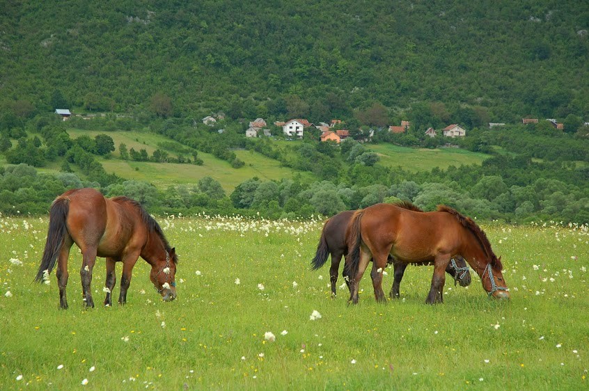 Polja to wizytówka Bośni. To typ kotliny, który w tej formie, z jaką zetkniemy się podczas naszej podróży, można spotkać tylko na Bałkanach. Ogromne płaskie obszary zamknięte pomiędzy stromo wypiętrzającymi się zboczami. Choć kotlina rozumiana jako duży i stosunkowo płaski teren otoczony górami to zjawisko dość powszechne, to forma, z jaką mamy do czynienia w Bośni, jest fenomenem. Dno polja wydaje się bowiem tak płaskie, jak stół. Rozlewa się czasami na dystansie dziesiątek kilometrów i kontrastuje z silnie wypiętrzonymi ścianami, wzbijającymi się ponad jego dno nawet o 800 m. Przez fakt, iż polja w Bośni występują często, krajobraz Bośni ma niepowtarzany charakter. Pozwalający sięgać wzrokiem daleko, a zarazem zamykający pomiędzy skalnymi ścianami jakiś rodzaj ludzkiego zagubienia w świecie, który bierze się z obcowania z czymś potężnym. Bośniackie polja są niezwykle różnorodne. Nawet sąsiadując ze sobą potrafią być tak odmienne, co wynika z niesamowitej odmienności tworzących je pasm. Każde z nich ma jakąś swoją wizytówkę. Popowo Polje ma swoją rzekę Trebišnjicę, która znika w krasowych ponorach polja, aby wypłynąć kilkadziesiąt kilometrów obok Dubrownika. Dlugo Polje ma swój księżycowy krajobraz, w którym surowość otoczenia rodzi poczucie nierzeczywistości i jakiś dziwny metafizyczny niepokój. Glamočko Polje ma prowadzący do jego wnętrza niezwykle wąski śródgórski korytarz i przestrzeń kojarzącą się z filmami fantasy. Livanjsko Polje ma Buško Jezero – ogromny wodny areał, nad którym wypiętrzają się na ponad kilometr potężny masyw Kamešnicy. I wreszcie Nevesinjsko Polje ma swoją rzekę Zalomkę, która w okresie wiosny wypełnia jego otwarte przestrzenie niczym jezioro, aby latem zupełnie zaniknąć. Wszystkie one, choć należą do tego samego gatunku, mają swój wyjątkowy charakter, którego nie da się z niczym pomylić.