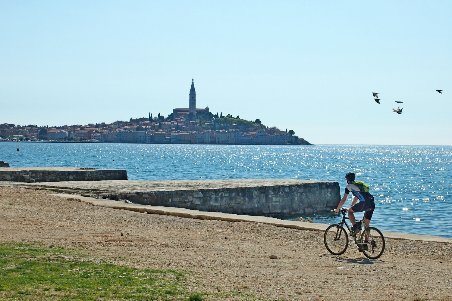 Istria to nie tylko wybrzeże. Przekonamy się o tym udając na rowerach w głąb półwyspu. Nasza dzisiejsza trasa poprowadzi pagórkowatymi terenami, w sąsiedztwie winnic, do historycznych położonych na wzgórzach średniowiecznych miasteczek. Rozpoczniemy od wizyty w Buje – niewielkiej, malowniczej miejscowości, której charakterystyczna dzwonnica góruje nad terenami północno-zachodniej Istrii. Niedaleko za miastem skręcimy w Via Parenzana, którą pojedziemy do Groznjan, urokliwego średniowiecznego miasteczka zwanego „miastem artystów”. Nie bez powodu, nieomal na każdym kroku znajdziemy tam niewielkie galerie czy rękodzielnicze pracownie. Poświęcimy nieco czasu aby na własną rękę odkryć jego wąskie uliczki i zakamarki, zakosztować w regionalnych przysmakach sprzedawanych w lokalnych sklepikach. Wróćmy natomiast jeszcze na chwilę do Via Parenzana… Droga ta była niegdyś trasą wąskotorowej kolei łączącej Triest i Porec. Obecnie jest to pełna wspaniałych widoków trasa pieszo-rowerowa, która choć miejscami nieco bardziej wymagająca, poprowadzi nas poprzez wzgórza, lasy oraz dawne tunele i wiadukty kolejowe aż do Livade. Już po drodze zobaczymy z oddali górujący nad okolicą Motovun – miejsce naszego kolejnego przystanku. Jest to najlepiej na całej Istrii zachowany średniowieczny kompleks, pełen renesansowych oraz gotyckich budowli. Jak mówi jedna z legend – niegdyś zamieszkany przez olbrzymy… Jak na twierdzę jednak przystało nie jest łatwy do zdobycia. Zanim postawimy nogę w centrum czeka nas krótki, lecz solidny podjazd (250 m). Po zwiedzeniu miasteczka i uzupełnieniu sił czeka nas nagroda! 250 m… w dół! Dalej już spokojna trasa rowerowa wzdłuż rzeki Mirna w kierunku Novigradu, gdzie zakończymy pełen wrażeń dzień.